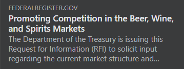 Click Link Here: https://www.federalregister.gov/documents/2021/07/28/2021-16115/promoting-competition-in-the-beer-wine-and-spirits-markets